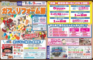 6月の折り込みチラシは、「2025年補助金を使って省エネリフォーム」10年以上お使いの機種の取替をおすすめします。今なら、お得な補助金をうまく使って交換費用を節約しましょう。